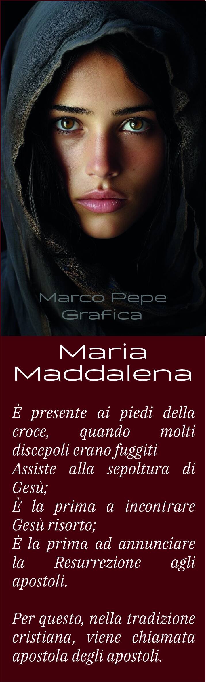 In questa rubrica raccolgo i miei segnalibri, che amo progettare e realizzare, nati dalla mia passione per la lettura. Sono oggetti semplici, silenziosi e discreti, ma preziosi: segnano il tempo, lento, dello scorrere delle pagine, accompagnano ogni libro e ne custodiscono il cammino, attendendo pazienti il mio ritorno. Piccoli, eppure grandi amici, capaci di stare al loro posto senza mai passare inosservati. Ogni progetto racchiude il mio stato d’animo nel momento della progettazione. Come piccoli quadri, riflettono emozioni, pensieri e sensazioni vissute in quell’istante, catturandole e fissandole nel tempo, perché restino per sempre.